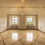 Altbauwohnung mit Stuck an der Decke und den Wänden, 2 Fenster mit Blick auf Bäume und Berge